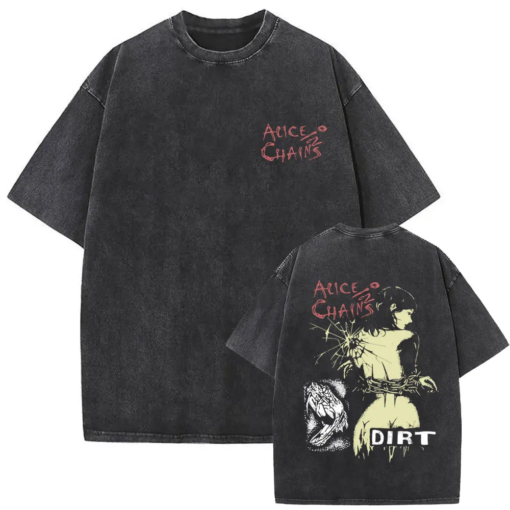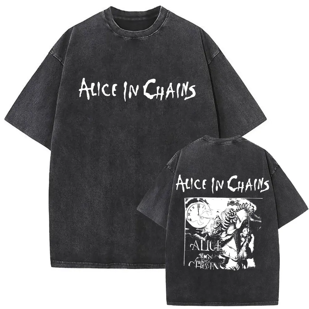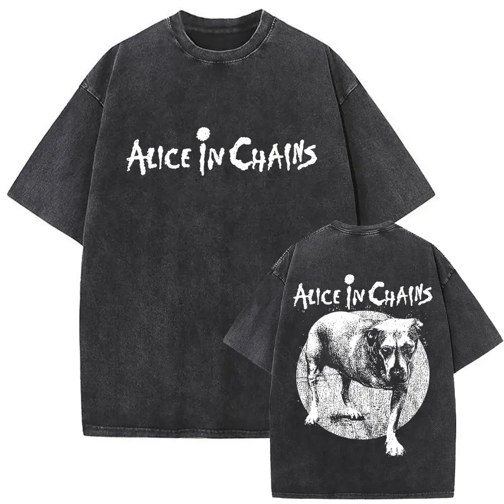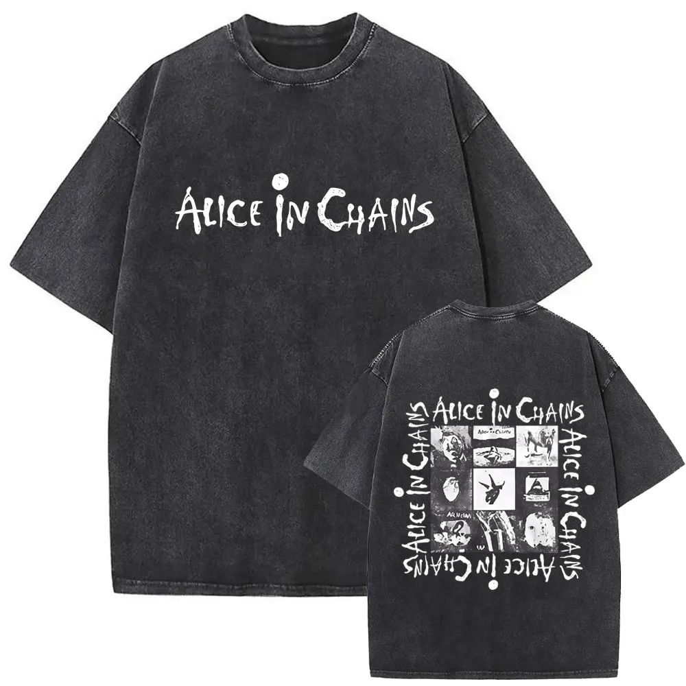 Washed Vintage Rock Band Alice in Chains Album Cover Graphic Print T-shirt Men’s Women Gothic Punk Oversized Crewneck T Shirts